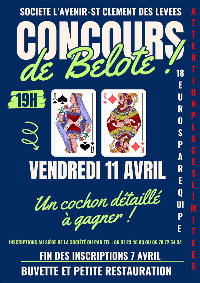 28 février, 2026 @ 15h00 - 17h00 Finale du challenge en Tête-à-Tête 2026 Société Les Mariniers 13 rue Georges Perron, SAINT CLEMENT DES LEVEES, Pays de la Loire, France 5€